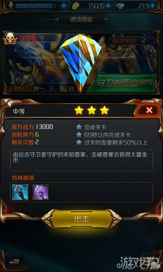 基本上挑战中等程度的战斗环节,玩家需要留意的方面内容还是很多的,玩家主要考虑的问题,就是在玩家机甲在突破外围守卫者的攻击效率;中等挑战战力最低上限是需要13000,但是通关实际玩家的战力完全不能地域14000,基本上玩家的战力过低,在这个设有时限的场景通关进程中,纵使玩家必杀满屏全开,也很难做到有效的突破守卫者的屏障,从而进行通关。