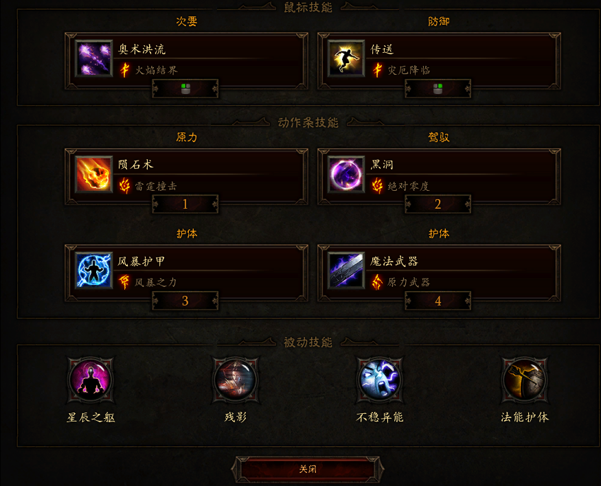操作手法:进图只需丢一次陨石+黑洞然后全程鼠标左键按住奥术洪流4-6秒一次右键传送尽量贴怪脸完毕