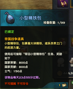 玩家获取到了自己想要的精铁,右击使用,就会有任务提示接取。