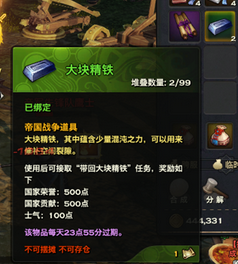 精铁和情报一样,都是颜色品质不同,国家贡献和国家荣誉不同,金色最好。