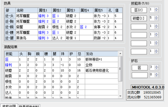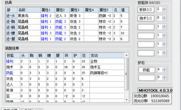 配装方面,因为铳枪的机动性非常差,所以最好配出防性或者回性之一,另外,铳枪斩味消耗比较大,所以最好有业物或者极磨之一,这里给几套推荐配置好了。