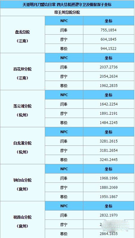 天涯明月刀盟会日常NPC在哪 天刀盟会NPC位置坐标大全