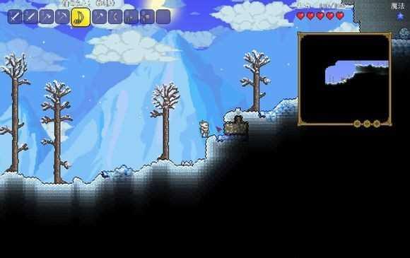 下矿辛辛苦苦打造了一套银套装,这种地方叫雪原,全是冰和雪,少有植被或土壤。前期特殊生物有企鹅,爱斯基摩僵尸,冰霜史莱姆。树木没什么特殊的。就长的不一样,砍下了都是木材。地下的宝箱均为冰霜宝箱及少量黄金宝箱。