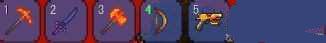 妖刀村正 攻击力19 非常快速的攻击速度 进程伤害 制作夜刃 魔法飞弹 法器 消耗10法力 可以用鼠标操控位置 伤害23 普通的攻击速度 海蓝魔杖 喷射一群水流 非常快速的攻击速度 消耗6法力。