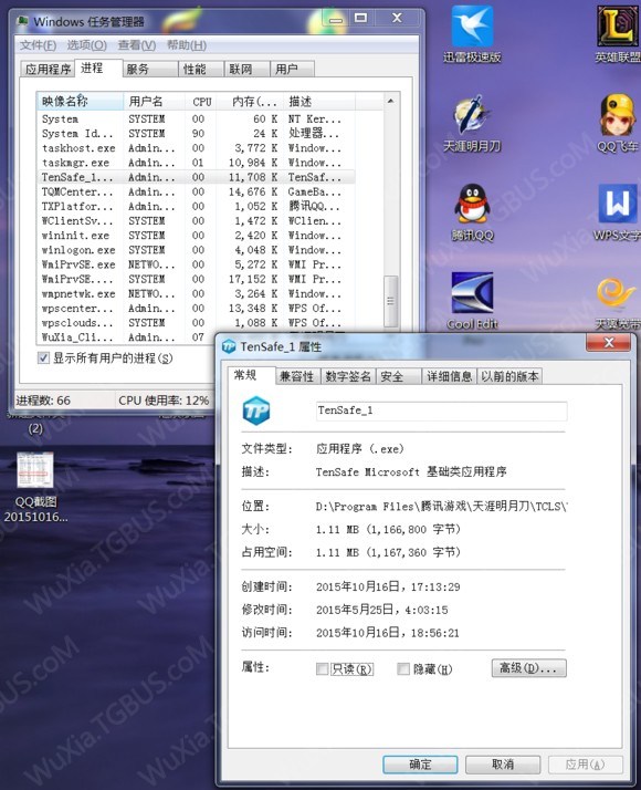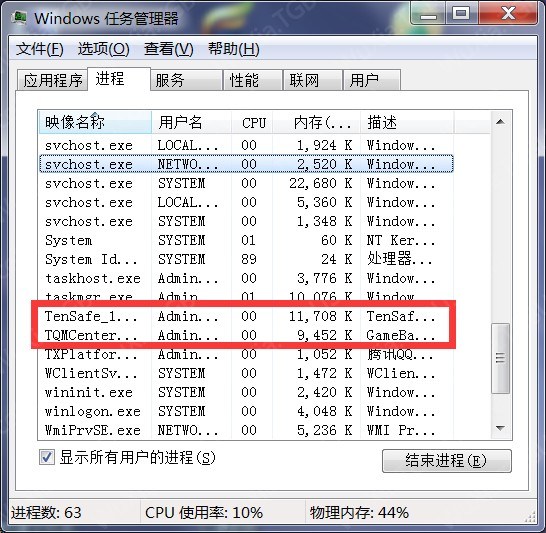 首先,正常登陆游戏,等待TP安全扫描,安全扫描之后正常进入游戏,然后窗口最小化,调出任务管理器。control+alt+del。然后找到进程,再找到如图两个进程。