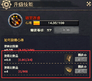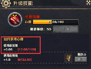 后期8级的技能100点心得,每使用一次仅得到0.05点,需要使用2000次才能升级,我们也不可能一直在线无限使用这个无双技,那么就有了公会无双研习的帮助