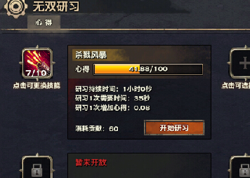 注意:进行无双研习必须在线即可获得心得,这个绝对是提升无双技能等级非常好的帮手。