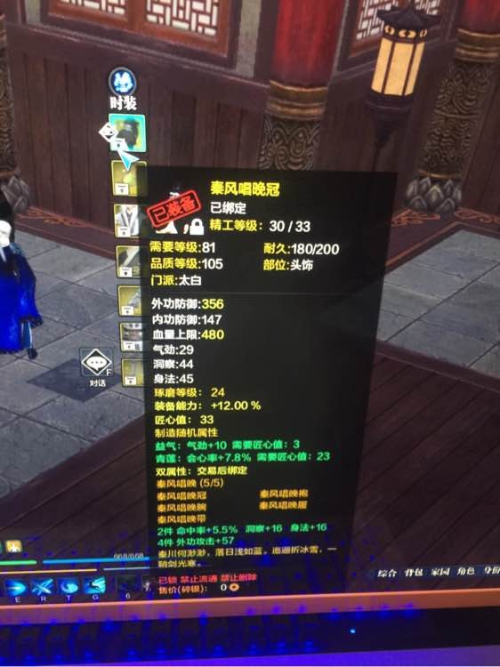 天涯明月刀 第一个破1万5的太白 附T2全装备数据