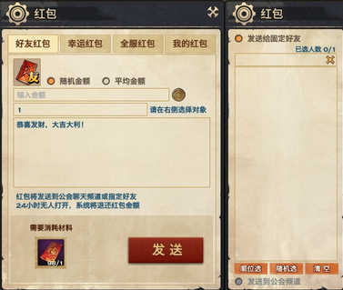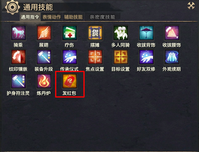 玩法开放后,玩家可通过苏澜杂货店购买红包,打开发送;也可打开通用技能面板(默认快捷键N),进行发红包。