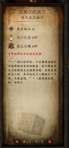 配方:套装物品×1、死亡气息×10、遗忘之魂×10