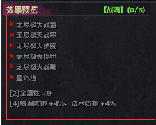 其次剑冢战魂属性 2件——全属性+9 4件——物法防+4%