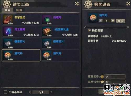 从上图我们可以看到,增加对应职业的专精修炼经验需要服食凝气丹,凝气丹目前仅可利用国家贡献在帝军商店“任青”处购买或通过与玩家交易获得。其中非绑凝气丹必须消耗帝军徽记购买。
