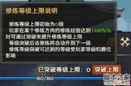 修炼等级突破可到达上线等级与玩家等级和当前爵位影响,等级和爵位越高,修炼等级可突破上限越高。