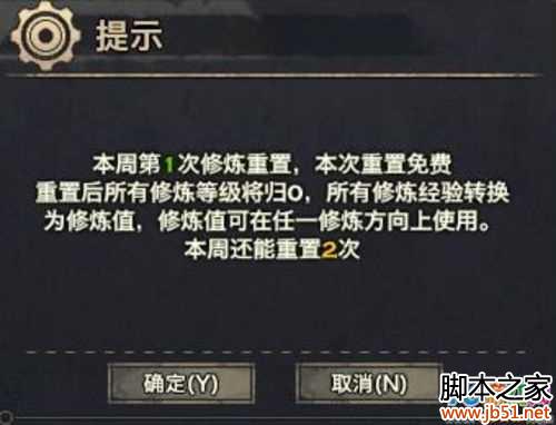 每位玩家每周最多享有3次重置职业专精修炼的机会,第1次均为免费重置,后续2次必须消耗云币方可重置。