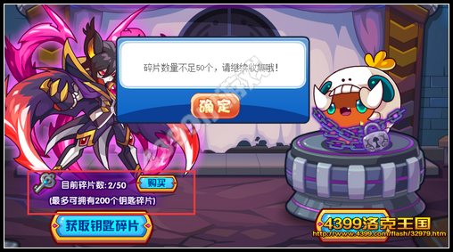 获得50个钥匙碎片即可兑换一只利齿加加。