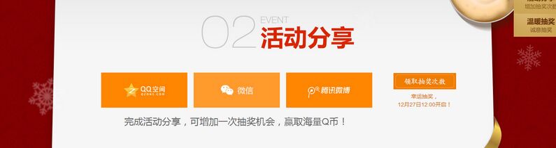 接下来就是各位需要注意的后续活动了,这个抽奖资格参加的前提是你参加了整点在线活动,点击抽奖之后会很清楚的提示“请完成12月26日21:00游戏内在线再来哦”,这个分享又是发到自己的微信/QQ/微博,悠悠一般是转发了就删掉=。=