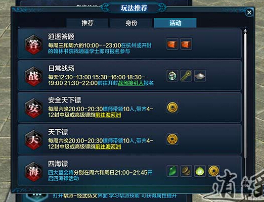 这个一般是系统所认定的可以获取的每日收益,譬如押镖,暗杀,挖宝,天下镖等等系统玩法。每日每周参与限定次数,但可以获得大量碎银或流通金,凭借这些钱我们可以和其他玩家交易,购买到我们所需要的材料和装备。