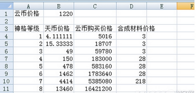 东西比较粗糙,我先说下我的思路。我自己用琉璃珠做了一身6级神格所有有过一次估价。平均一个4级神格的话费在15RMB。算上游乐场点卷的价格。一张点卷的价格大概就是1天币的价格。然后6000点驱魔积分就是14块钱左右能开出来。这个之前有过统计。不过不见了。可是一个4级神格的实际价格确实就是15R左右。5级神格是4级神格*3+火的价格,3级神格是(4级神格-火的价格)/3 以此类推得到每级神格的价格。然后对应每个区的天币比例,填上去会自动出现对应神格的云币出售价格。如果收神格的价格高于算出来的价格的话。各位果断的直接用琉璃珠换吧。