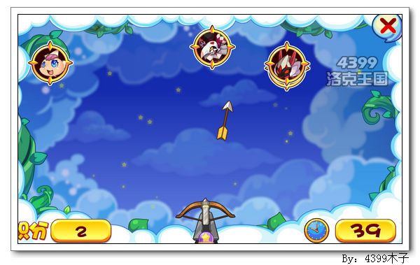 活动玩法:用鼠标控制弓箭方向发射出弓箭击落飘在上面的宠物就可以获得积分啦~