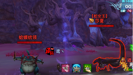 蛤蟆和蛇不是说好的捕食关系嘛,这里建议等级低、装备差的队伍将它们分开打,让T去拉蛇,远离队友,其他队友集火先干掉蛤蟆,奶妈不断给T回血。下面讲下它们的技能: