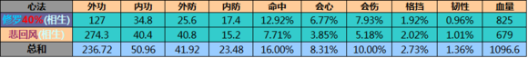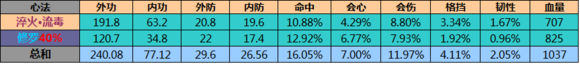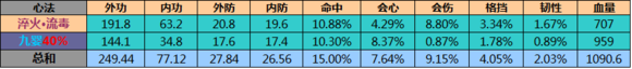 但是心法并不是一本一本的比较,1号位100%,2号位40%,必须把属性换算下来才可以有最直观的比较。