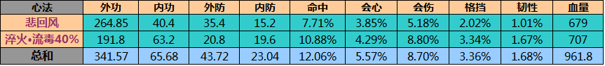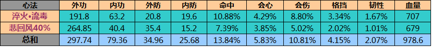 悲回风是严重偏科的心法,需要高百分比的心法互补,流毒其实比较均衡,和悲回风的搭配并不如悲回风+修罗。