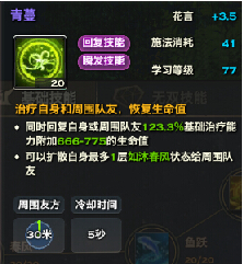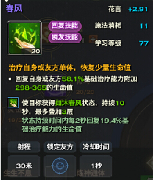 大范围的瞬发群加技能,不过治疗量较低。治疗循环中与春风作为组合技使用。