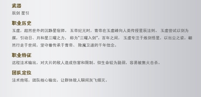 今天小编给大家带来的是关于天谕玉虚心得分享 教你正确理解官方玉虚介绍,小伙伴们一起来看一看吧。职业特征 远程法术输出,对大片的敌人造成伤害和限制,但生命较弱,容易被集火击杀