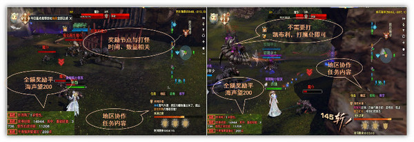 基于9.17晚的时间,碧竹林地区协作一轮的持续时间约为8~9分钟(其中第一环5~6分钟,第二环2~3分钟),每一轮之间的间隔约为7~9分钟。这样一个小时基本会刷新大约4~5轮,频率非常快,而且任务内容也非常简单,对于不想使用云券购买黑市平海贡品的玩家来说,更新后碧竹林地区协作将成为获取平海声望的高效途径,简直是福利有木有?!