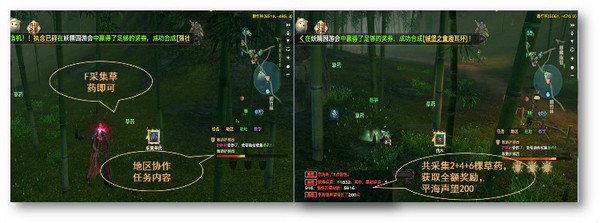 2)救助护林员:采集任务。草药非常密集,三个节点分别采取2+4+6棵草药即可。100%声望奖励为平海镇声望200,预计时间两分钟。