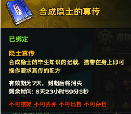 这东西居然是周更的真是简直了。。这个东西要放在包里才能用,然后互就能制作需要隐士真传的物品啦