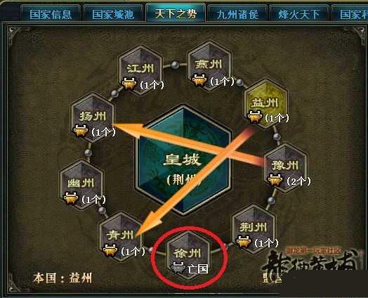 随着扬州实力的大幅削减,荆州为了激情,开始把矛头对准了的弱国,先前的青州、益州、徐州等国的散人玩家为了激情而对抗荆州,而这些国家的王帮因为畏惧荆州帝国人多势众,不敢与之对抗。