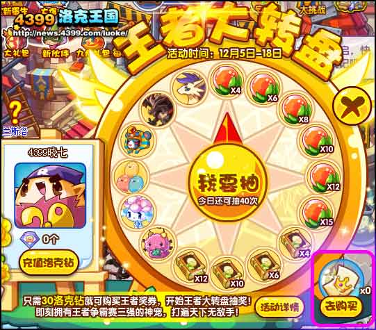 参与到活动【洛克王国王者大转盘】就能获得神宠水球球啦!