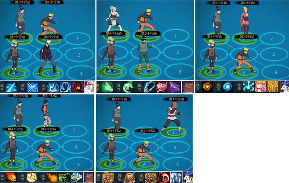 第三回合如果三船还没死则鸣人或主角剩下的那个奥义补给他,后面不放技能随便打