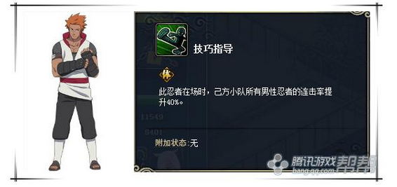 答:大岩拳之术,木叶旋风。最好搭配是2高攻(建议卡卡西,勘九郎或八门李,凯)1防守(土主)1治疗(建议药师兜) >>详细