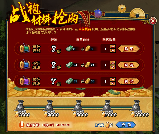 *活动期间,可以在活动界面以超值折扣价购买战袍升阶材料,最低至7折。