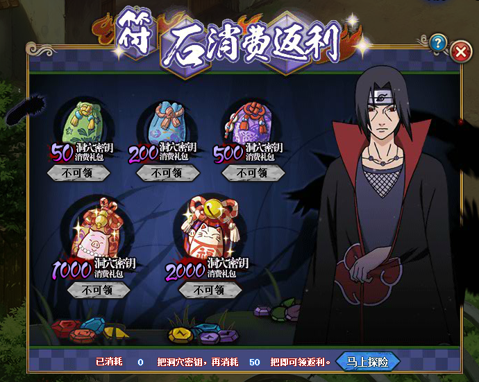 *消费指定数量的洞穴密钥将得到“洞穴密钥(限时)”、“5级攻击勾玉”和“洗炼突破丹”等珍贵道具。
