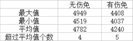 这两组是无伤免和有伤免的伤害数据,我们做个比较: