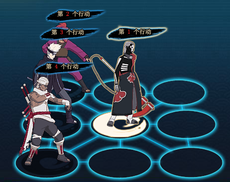 自动要注意入阵顺序:飞段先入阵,再雷主,再老紫,再奇拉比,奇拉比奥义会给黑飞段,黑飞段2次普攻。