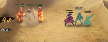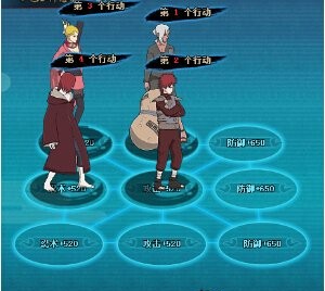 第二回合麻布衣的起手有两点选择,一种是配合第一回合的点杀目标进行连击点杀,另一种是连击控制另外一个忍者与第一回合长门奥义的连击形成双控,怎么选择需要根据阵容和局势来定,一般来说碰到老紫双解水都可以选择2次连击都选老紫强行点杀。麻布衣奥义+40查克拉,麻布衣行动又加40,麻布衣行动后还可以用我爱罗奥义进行收割,如果结界是我方的,那么此时应该是必死1人,3人血量见底甚至死3人,然后风主还能刷新。