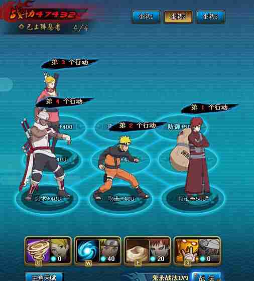 推荐:我爱罗必须最好的生命防御和抗性套,风主和鸣人最好的忍术和攻击套,大家觉得生命不够的话可以换阵法。