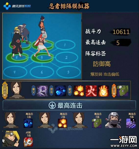 核心其实是迪达拉,这个阵在新区当中有着非常重要的作用,因为新区的组织战拼的是护盾,还有火主的爆炸。主要是打第一回合,比如必胜雷这种队伍,在还未出手的时候其实已经被炸到死一大半了。但是输出相对局限,因为可以使用分身来抵消一大部分伤害,比如风主带个多重影分身。或者带个致盲效果也是不错的。