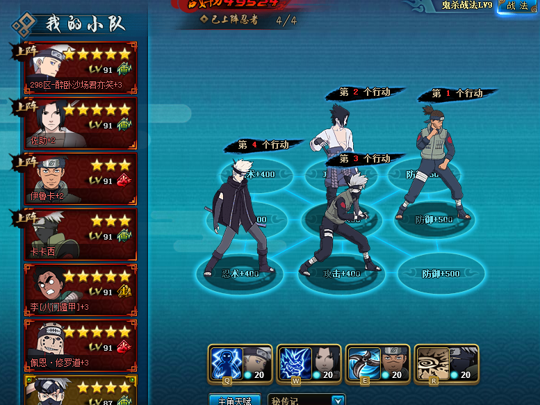 第五,卡殿下可以上场了。心里很爽有木有!!!(这个无视)。。。(在这我首先得先说清楚一点。。这个队伍是专门为克制目前的主流毒奶而研发的。。打其他的应该不是很好用。)我之所以在这里分享的阵容,也是为了游戏的平衡.正如以前分享的土主鼬奇拉比风影队一样。我是为了保证游戏阵容的多样性而分享的。百花齐放的忍者世界一定很精彩。。