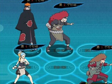 第二批敌人 手鞠下回合会加盾,三船奥义伤害很高,大蛇是叛忍大蛇,所以奥义先选大蛇丸。