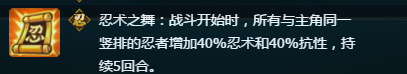 如此一来,水门在不触发追打前拥有80%忍术buff和40%攻击buff;秽土白有40%攻击与忍术外还有30%对非秽土忍者的伤害buff;带土有对抗人柱力的buff,都为这支队伍在千两回合秒人奠定基础