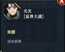 综合分析:忍天标签少,女性和木叶,但是水属性能搭配水结界和水主被动水强增加输出,这是一个思路,也可以风主的忍术之舞,奥义输出中等伤害,但是有五种属性,必定打出克制伤害,再有暴击心得。输出相对会变高些,既然奥义的进场0冷却,那进场就能释放是最好的搭配,配合回查克拉忍者,并且是瞬发奥义。忍天的追打还算给力,有2此的追打击退造成打浮空,还有10连触发的2体麻痹,而且还是2回合的麻痹,第1回合送上2回合麻痹,让对方第2回合连击链断开。暴击心得增加自身和输出忍者的奥义输出。值得升星的忍者。什么时候再有活动呢?