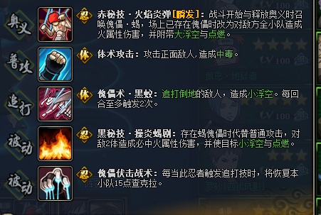 *修正了勘九郎[忍界大战]的奥义[黑秘技·三大悲剧]改为[赤秘技·火焰炎弹]:修正没有连击数的问题,并将伤害类型调整为忍术,同时伤害作用率上调,去除中毒效果。