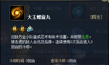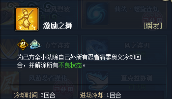 而付出如此巨大的努力,换来的仅仅只是和主角同一竖排的忍者获得忍术和抗性增加百分之40的时效BUFF。