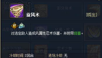 忍风标签,风主第一个奥义是无消耗、无冷却造成目盲这个异常状态的单体奥义。伤害,你觉得就风主这1千出头的忍术资质能打出高伤害么?