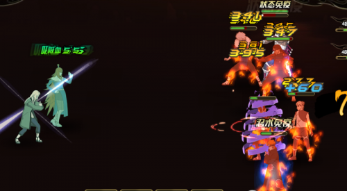 赵美冥:奥义 瞬发 忍术伤害 攻击7体目标,并造成点燃消耗60查克拉 (吸血中)